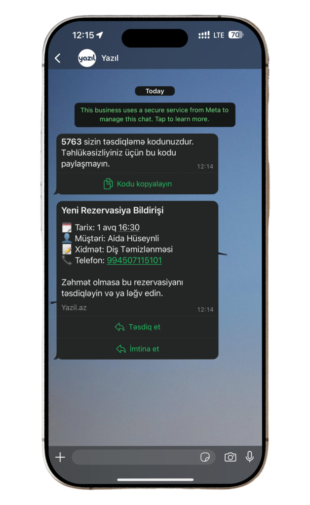 Avtomatik SMS və WhatsApp xatırlatmaları ilə son dəqiqə ləğvlərini və gəlməyən müştəri sayını kəskin şəkildə azaldın. Cədvəliniz dolu, gəliriniz isə stabil qalsın.